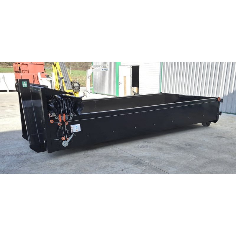 Cabriolé est un système breveté par Cramaro, sans rails de guidage. La bâche glisse sur les profilés supérieurs de la benne sur des patins antifriction.