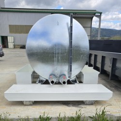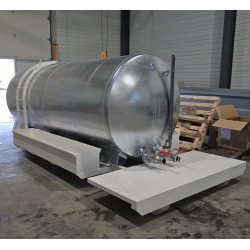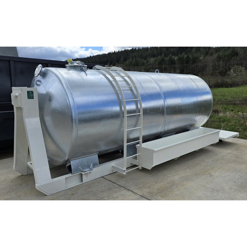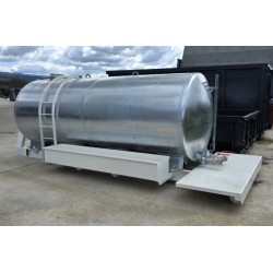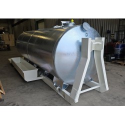 Citerne sur berce en acier galvanisé, avec trou d'homme, passerelle arrière et 2 sorties arrières à vanne